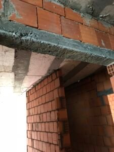 Kapı ve pencere boşlukları bırakılır, lentolar yerleştirilir.